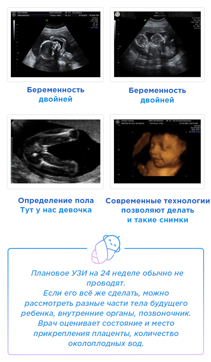Во время ультразвукового исследования на 24 неделе беременности картина выглядит примерно так: