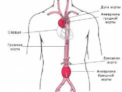 Аневризма может находиться в любом участке аорты — от выхода из сердца до перехода в брюшную часть.