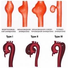 - Псевдоаневризмы (aneurysma spurium). Образуются при повреждении внутреннего слоя стенки аорты, когда кровь скапливается в капсуле из соединительной ткани, создавая видимость выпячивания.