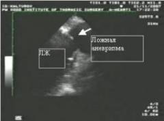 - Ложные аневризмы сердца. Неполный разрыв, который может привести к серьезному кровотечению. При обнаружении таких аневризм необходимо срочное хирургическое вмешательство.
