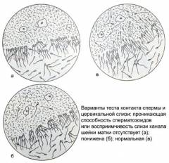 - нарушению проникновения сперматозоидов в цервикальную слизь;