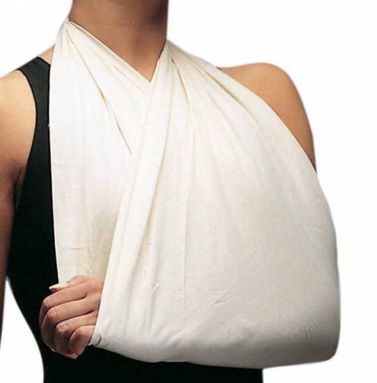 Иногда, обычно при артритах и артрозах, достаточно помочь плечу подвесив на треугольный кусок ткани предплечье руки, согнув локоть под углом 90° или больше. Бандаж косыночный на плечевой сустав тоже выпускаются специальными ортопедическими мастерскими. Но тех, кого не устраивает вполне доступная цена, могут сшить такую повязку самостоятельно.