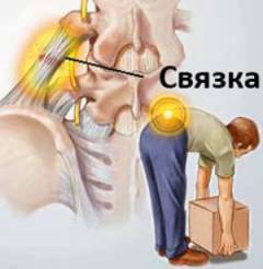 - Растяжение мышц и связок поясницы чаще встречается у спортсменов или у людей, не занимающихся физической активностью, после чрезмерных нагрузок. Боль сопровождается воспалением и отеком в пораженной области.