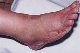 Одно из проявлений подагры — подагрический артрит, вызывающий боли в суставах стоп. Приступ подагрического артрита характеризуется: