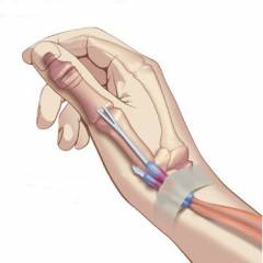 Болезнь де Кервена — воспалительное заболевание, затрагивающее фиброзные влагалища сухожилий короткого разгибателя и длинной отводящей мышцы большого пальца. Воспаленные влагалища сжимают сухожилия, вызывая их воспаление и утолщение. При пальпации можно обнаружить болезненность и отечность вдоль синовиальных влагалищ этих мышц. Боль локализуется в запястье и может распространяться на большой палец и предплечье.