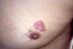 Узловая форма фиброзно-кистозной мастопатии развивается на фоне диффузной, когда мелкие уплотнения увеличиваются и образуют более крупные узлы, достигающие нескольких сантиметров в диаметре, чаще всего в верхне-наружном квадранте молочной железы.