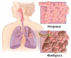 - Очаги пневмосклероза. Длительное воспаление вызывает изменения в клеточной структуре: мышечные клетки погибают, и на их месте формируется плотная соединительная ткань, образуя участок пневмосклероза, не участвующий в дыхании.