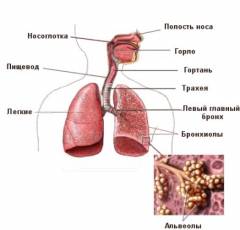 - Долевые бронхи (первого порядка). Эти бронхи отходят от главного бронха и направляются к каждой доле легкого: в правом легком — 3, в левом — 2.
