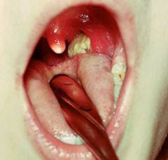 Сильный отек слизистой ротоглотки | Токсин вызывает экссудацию. | Боль при глотании, открывании рта. | Миндалины значительно увеличены. |