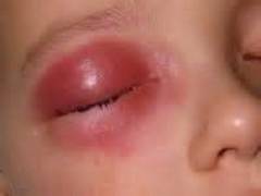 Внешний вид пациента может косвенно указывать на этмоидит. Периорбитальная область может быть отечной и покрасневшей, конъюнктива глаз также может быть воспаленной. В начале заболевания может наблюдаться лишь отечность и покраснение внутреннего угла наружного века, но на поздних стадиях отек и покраснение могут охватывать всю поверхность век. Веки становятся напряженными, болезненными и могут иметь синюшный оттенок. Глазная щель может быть сужена, а движения глазного яблока ограничены.