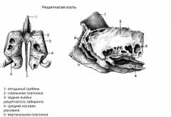 Решетчатая или этмоидальная кость — непарная структура, формирующая лицевую часть черепа и разделяющая носовую полость от черепной. Она относится к пневматическим костям, поскольку внутри нее находятся полости, выстланные слизистой оболочкой и заполненные воздухом, что снижает вес кости.