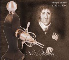 Основателем гистероскопии считается немецкий ученый Филипп Боззини, который в 1806 году разработал устройство для обследования полости матки и прямой кишки. Прибор представлял собой стальную трубку с тремя отверстиями: двумя маленькими и одним большим. В большом отверстии фиксировалась зажженная свеча для освещения, а малые использовались для визуализации.