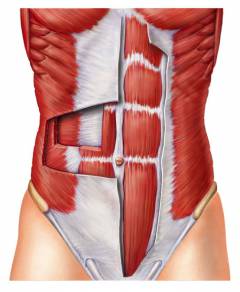 - Мышцы брюшного пресса занимают почти всю переднюю область живота, расположены по бокам и покрыты фасцией.