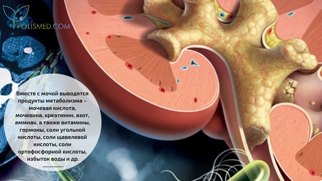Мочевыделительная система играет ключевую роль в организме. Она отвечает за формирование, накопление и выведение мочи. С мочой выводятся продукты обмена веществ: мочевая кислота, мочевина, креатинин, азот, аммиак, витамины, гормоны, соли угольной, щавелевой и ортофосфорной кислот, избыточная вода и другие вещества.
