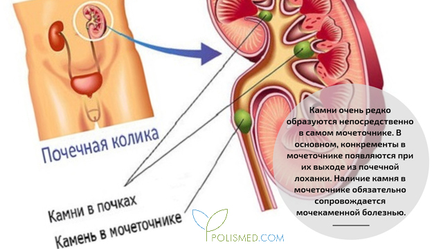Камни в мочеточнике образуются при выходе конкремента из почечной лоханки.