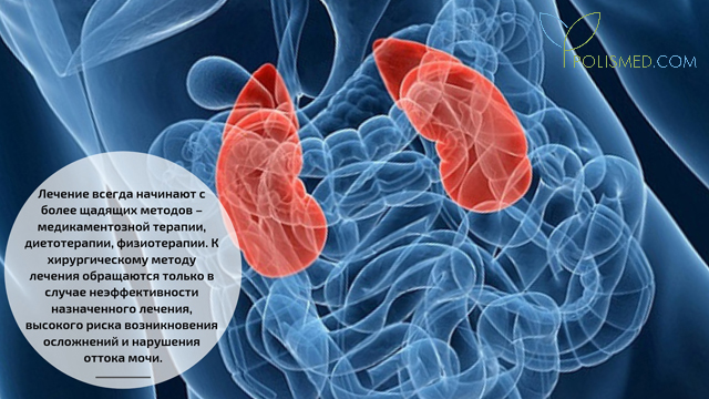 Уролог проведет лабораторное и инструментальное обследование, проанализирует жалобы и симптомы пациента, а также его привычки в питании и образе жизни. На основе этих данных врач подберет индивидуальное лечение — терапевтическое или хирургическое. Первым шагом будет восстановление оттока мочи и устранение боли, что определит метод и срочность терапии. Лечение может быть амбулаторным или стационарным, в зависимости от типа камней, степени поражения почек и мочеточников, наличия осложнений и серьезных сопутствующих заболеваний. Пациент будет находиться под наблюдением врача на протяжении всего курса лечения.