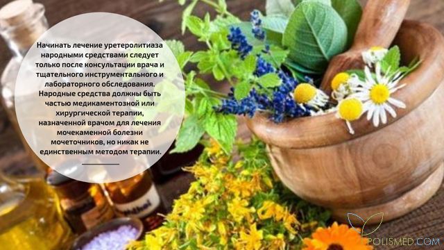 Народные методы могут помочь при уретеролитиазе, но перед началом терапии важно помнить о рисках самостоятельной диагностики и лечения. Это может затянуть время, когда заболевание еще можно вылечить медикаментами, избегая операции.