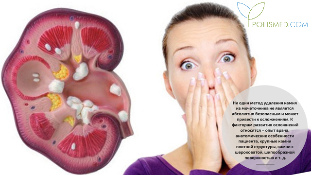Ни один метод удаления камней из мочеточника не гарантирует абсолютную безопасность и может вызвать осложнения. К факторам, способствующим осложнениям, относятся квалификация врача, анатомические особенности пациента, наличие крупных камней с плотной структурой и камней с неровной или шиповатой поверхностью.