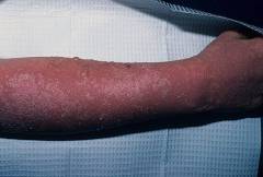 Характеризуется появлением и быстрым распространением мелких и крупных пузырьков (иногда размером с горошину) на неизмененной или покрасневшей коже, а также на папулах или бляшках.