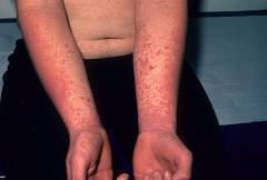 Элементы сыпи могут охватывать большие участки кожи или появляться скоплениями, а затем распространяться. Выраженный зуд может привести к раздражительности и бессоннице.