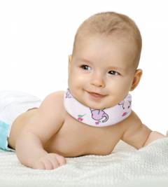 - Используйте по назначению врача. Ношение воротника без необходимости или слишком долго может ослабить шейные мышцы и замедлить развитие способности малыша держать голову.