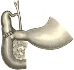 Желчекаменная болезнь. Соединение желчного протока с двенадцатиперстной кишкой.