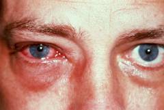 Аллергический конъюнктивит — это воспаление конъюнктивы глаза, возникающее при контакте с аллергенами: пылью, пыльцой, химическими веществами, продуктами питания и медикаментами. Отёки под глазами объясняются расширением сосудов и изменением их проницаемости, что приводит к накоплению жидкости в подкожных тканях век.