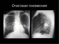 - в легких слышны сухие или влажные мелкопузырчатые хрипы, поражение обычно одностороннее и очаговое;