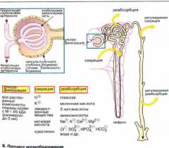 Далее первичная моча попадает в мочевые канальцы, где обратно всасываются полезные вещества и вода, а вредные накапливаются. В результате первичная моча превращается во вторичную (около 1,5-2,0 литров в сутки). Затем вторичная моча попадает в собирательные трубочки, далее — в чашечно-лоханочную систему, мочеточник и мочевой пузырь. Во время мочеиспускания вторичная моча выводится из организма.