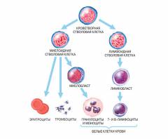 - Стволовая клетка преобразуется в клетку-предшественницу лимфопоэза, из которой формируются только лимфоидные клетки.