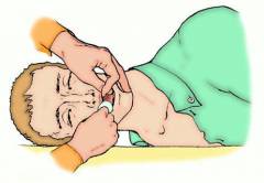 | Обеспечить проходимость дыхательных путей | 1. Вытянуть язык. 2. Очистить ротовую полость. 3. Удалить содержимое рта резиновой грушей. 4. При сильном слюнотечении ввести 1,0-0,1 % атропин внутривенно. | * Обеспечить поступление кислорода. * Предотвратить закупорку дыхательных путей. | |