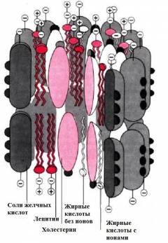Желчные мицеллы — это частицы компонентов желчи, окруженные ионами, образующие коллоидную структуру.