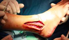 Стопа получает кровоснабжение от ветвей передней и задней большеберцовых артерий, которые на уровне стопы превращаются в тыльную артерию стопы и латеральные и медиальные подошвенные артерии. Эти сосуды образуют соединения, формируя замкнутую дугу, что сохраняет кровообращение даже при повреждении одной из артерий. Однако повреждение сосудов стопы, особенно при атеросклерозе, может привести к серьезной кровопотере и ишемии, вызывая необратимые повреждения тканей.