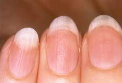 - «Масляные пятна» — розовые пятна неправильной формы, просвечивающие через ноготь.