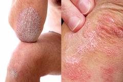 Виды псориаза. В зависимости от локализации выделяют обычный и обратный псориаз. Первый встречается в 85% случаев и в основном поражает кожу головы. Чешуйчатые покраснения шелушатся, кровоточат и вызывают неприятные ощущения. Для обратного типа характерно появление в труднодоступных и невидимых глазу местах.