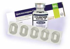 Иммунодепрессанты | Циклоспорин А (Неорал, Сандимун) | Снижают активность Т-лимфоцитов, вызывающих усиленное деление клеток кожи. Стерильный раствор в ампулах. Начальная доза при введении в вену – 3-5 мг/кг в день, для приема внутрь – 10-15 мг/кг в день. |