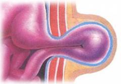 Воспаление органа в грыжевом мешке. В этом случае возникают боли, отечность и покраснение в области грыжевого выпячивания, повышается температура тела, общее состояние пациента ухудшается.