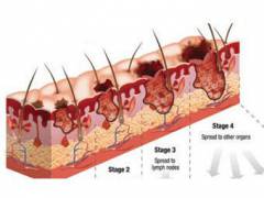 На 3 и 4 стадиях заболевания биохимический анализ крови показывает повышенный уровень фермента лактатдегидрогеназы, превышающего 250 Ед/л. Это вещество начинает выделяться на поздних этапах, когда образуются метастазы. Однако высокие показатели могут также указывать на другие заболевания, такие как сердечная недостаточность, пневмония или миопатии. Поэтому этот анализ не может служить окончательным подтверждением диагноза «рак кожи».