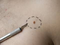 - Биопсия. Подозрительное родимое пятно полностью удаляется для анализа.