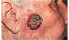 Базальноклеточный рак кожи (базалиома) – наиболее распространенный и наименее опасный вид рака кожи. Метастазы образуются лишь в 0,5% случаев, но опухоль разрушает окружающие ткани, особенно на веке или возле носа.