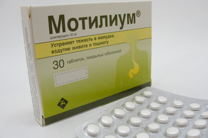 - Мотилиум — 20 мг (2 таблетки) 3 раза в день за 20-30 минут до еды.