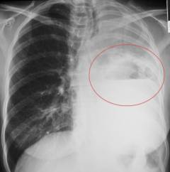- Рентгенография. На снимке опухоль видна без четких границ, размеры варьируются от нескольких сантиметров до объема целого легкого. Поражение легких не симметрично.