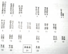 При синдроме Дауна в 21-й паре хромосом появляется лишняя третья. Такое состояние называют «трисомия 21». Почти всегда ребёнок с синдромом Дауна рождается у здоровых родителей в результате случайной ошибки при формировании половых клеток матери или отца.