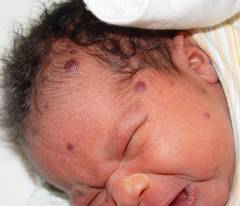 Родимые пятна и родинки (невусы) встречаются более чем у 80% пациентов. Даже если гиперпигментация кожи не наблюдалась при рождении, пятна начинают появляться постепенно (обычно в 2-3 года). Их количество значительно превышает средние показатели среди людей без хромосомных аномалий.