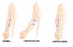 Вальгусное искривление локтей — форма аномального развития костной структуры. Исследования показывают, что этот признак встречается у 45-65% детей с синдромом Шерешевского-Тёрнера. При вальгусном искривлении рука, выпрямленная вдоль тела, отклоняется в сторону на уровне локтя. Нормальное отклонение составляет 3-29 градусов, тогда как у пациентов с синдромом Тёрнера оно обычно превышает эти значения. Симптом может сохраняться и в зрелом возрасте. Похожее отклонение наблюдается и в коленных суставах, где выраженная вальгусная деформация затрудняет обучение ходьбе у ребенка.