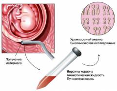 Основная проблема — получение клеток плода. Для этого проводят пункцию (инвазивное исследование). Специальная игла вводится в полость матки через переднюю стенку живота под контролем УЗИ. В зависимости от типа ткани эмбриона выделяют несколько диагностических методов.