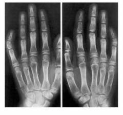 - клинодактилия мизинца (искривление в сторону безымянного пальца);