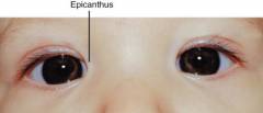 Эпикант — кожная складка в области внутреннего угла глаза. Этот признак часто встречается у новорожденных с синдромом Дауна. Синдром Тёрнера отличается тем, что эпикант сочетается с антимонголоидным разрезом глаз, при котором внутренний угол выше наружного. В случае синдрома Дауна глазная щель наклонена вниз от наружного угла к внутреннему, что называется монголоидным разрезом.