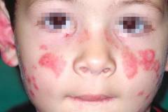 Изменения кожи при системной красной волчанке у детей. Сыпь геморрагического характера напоминает коревые высыпания и оставляет длительные пигментные пятна.