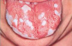- хронический кандидоз ротовой полости, возможны лейкоплакия и «волосатый» язык;